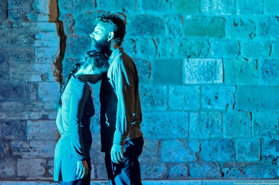SAN GIMIGNANO (SI). Arriviamo a San Gimignano in un caldissimo sabato pomeriggio di inizio luglio. Camminiamo in salita per raggiungere il centro del meraviglioso borgo, scenario da anni di un festival di teatro danza e musica: Orizzonti Verticali. Davanti a noi si scagliano per l'appunto antiche torri che si ergono nel cielo, immerse in un panorama mozzafiato in cui l'occhio si perde ancora per l'appunto in vasti orizzonti. Nessun nome fu più appropriato. La magia del luogo innesca subito emozioni ed è una cornice perfetta per accogliere gli spettacoli della serata: L'imputato non è colpevole, con la regia di Tuccio Guicciardini e Juliette on the road (foto di Francesca Di Giuseppe), liberamente tratto dall'immortale e immenso Giulietta e Romeo di William Shakespeare, presentato dalla compagnia Cie Twain Physical Dance Theatre con coreografie di Loredana Parrella. L'imputato non è colpevole è ispirato agli atti del processo a carico di un giovane armeno Soghomon Tehliran accusato (è lui stesso reo confesso) di aver ucciso a Berlino nel ‘21 l 'ex ministro degli interni turco, responsabile del genocidio degli armeni e rifugiato in Germania, paese che all'epoca sostenne la Turchia.